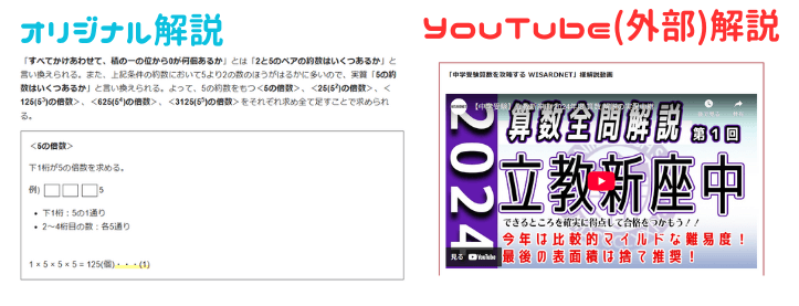 中学受験算数の一部過去問には解説・YouTubeの埋め込み動画(外部)付き
