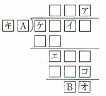 (3)右のように、4けたの整数を2けたの整数で割ります。AとBが表す数字をそれぞれ求めなさい。ただし、 には同じ数字が入ることもあります。