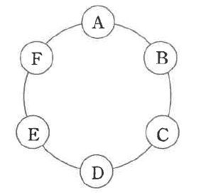 次の図のように円周を6等分する位置にA、B、C、D、E、Fがある。最初、コマがAの位置にあり、さいころを1回投げるたびに、1回目は時計回りに出た目の数だけコマを進め、2回目はその位置から反時計回りに出た目の数だけコマを進める。このように、1回ごとに向きを変えながらさいころの出た目の数だけコマを進める。このとき、次のようなさいころの目の出方は全部で何通りありますか。
