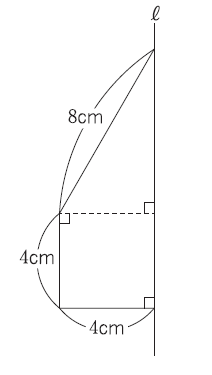 次の図形を直線ℓを軸として1回転させてできる立体の表面積は何cm2か求めなさい。