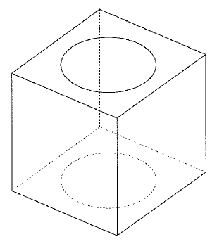 次の図のような、一辺の長さが6cmの立方体から、半径2cm、高さ6cmの円柱をくりぬいた立体があります。この立体の表面積を求めなさい。ただし、円周率は3.14とします。