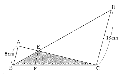 引用元:日本大学豊山中学校 2020年度入学試験問題(第1回) 算数 問4次の図において、辺ABと辺EFと辺DCは平行です。また、三角形EBCの面積は60cm2です。このとき、次の問いに答えなさい。