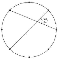 次の図のように、円周を8等分した点があります。このとき、の角度を求めなさい。