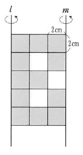 (1)かげのついた部分を直線lの周りに1回転させてできる立体の体積を求めなさい。
