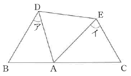 正三角形の紙ABCを次の図のように、頂点Aが辺BCに重なるようにDEを折り目として折り返しました。アの角度が47°のとき、イの角の大きさを答えなさい。