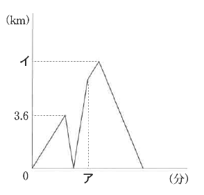 兄と弟の2人が家と公園の間を自転車で往復しました。兄は時速15km、弟は時速9kmの速さで同時に家を出発しました。次のグラフは2人の間の距離と2人が家を出発してからの時間の関係を表したものです。このとき、次の問いに答えなさい。