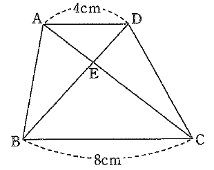 引用元:獨協中学校 2020年度入学試験問題(第1回) 算数 問2次の図の台形ABCDは、ADとBCが平行で、ADの長さが4cm、BCの長さが8cmです。対角線ACと対角線BDの交点をEとするとき。次の問いに答えなさい。