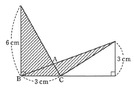 引用元:獨協中学校 2023年度入学試験問題(第1回) 算数 問1-(7)図の斜線部分の面積は11cm2です。三角形ABCの面積は何cm2ですか。