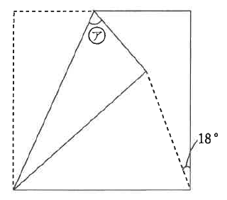 図のように、正方形の紙を折りました。このときの角の大きさは何度ですか。
