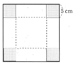 引用元:広尾学園中学校 2025年度入学試験問題(第1回) 算数 問1-(6)次の図のような正方形の紙があり、この紙の四隅から、1辺の長さが5cmの正方形を切り取り、ふたのない直方体の容器を作ったところ、容積が720cm3となりました。もとの正方形の紙の1辺の長さを求めなさい。ただし、紙の厚さは考えないものとします。