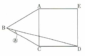 右の図で三角形ABCは正三角形、四角形ACDEは正方形です。点Bと点Dを直線で結ぶとき、あの角の大きさは何度ですか。
