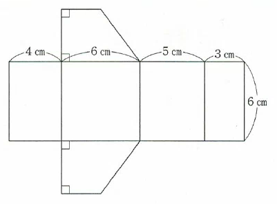 右の図の展開図は長方形と正方形と台形でできています。この展開図を組み立ててできる立体の体積は何cm3ですか。
