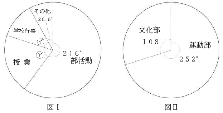 (2)図Ⅰのアとイの角度の比は5 : 3です。「学校行事」での発生件数は何件でしたか。
