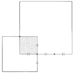 次の図は大小2つの正方形を、重なる部分が正方形になるように重ねたものです。大小2つの正方形の面積の差が20cm2であるとき、