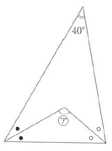 次の図で、同じ印をつけた角の大きさは等しいとします。の角の大きさを答えなさい。