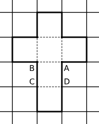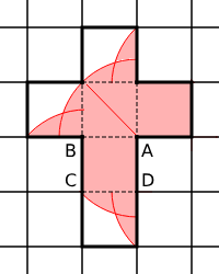 引用元:慶應義塾普通部校 2013年度入学試験問題(第1回) 算数 問9次の図のような立方体があります。正方形ABCDの対角線ACと等しい長さの糸があり、片方の端を頂点Aに付けました。立方体の表面でこの糸の他方の端が届く範囲を、展開図に斜線で示しなさい。
