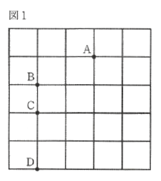①点AとBを結んだ直線を一辺とする正方形の1つを方眼紙にかきなさい。また、その正方形の面積を求めなさい。