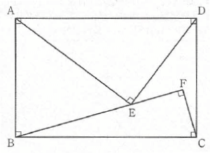 AD=75cmで、ABの長さがわからない長方形ABCDがあります。その長方形の内側に、3辺の長さがAE=60cm、ED=45cm、DA=75cmの直角三角形AEDと、CF=21cm、FB=72cm、BC=75cmの直角三角形CFBを置いたところ、次の図のようになりました。