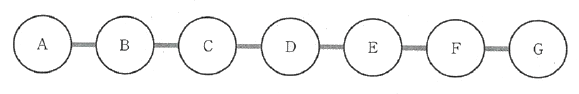 次の図のDに石を置きます。1から6の目があるサイコロをふって、奇数の目が出たら左へ。偶数の目が出たら右へ。出た目の数だけ石を動かします。AやGをこえたら、こえた分だけ逆向きに石を動かします。たとえば、4が出たらD→E→F→G→Fへ、次に1が出たらFEへ石を動かします。