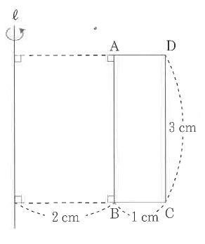 引用元:佼成学園中学校 2025年度入学試験問題(第1回) 算数 問2-(6)次の図のような長方形ABCDを、直線ℓのまわりに1回転させてできる立体の体積は cm3です。