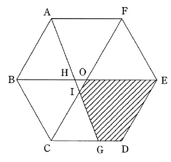 (2)五角形DEOIGの面積は、正六角形ABCDEFの面積の何倍ですか。