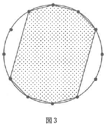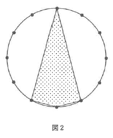 (2)次の図2の円周上の点は円周を12等分する点で、円の半径は8cmです。色を付けた図形の面積を求めなさい。
