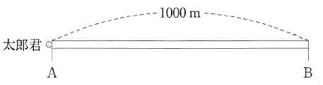 (1)設定が\( \displaystyle \frac{1}{2} \)、長さが600mの時間床がA地点からB地点の間にしかれています。このとき、太郎君がB地点に到着したのは12時何分何秒ですか。