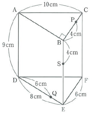(3)この三角柱を3点A、P、Sを通る平面で2つに切るとき、切り口の面積を求めなさい。