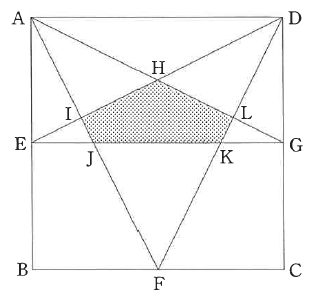 引用元:四天王寺中学校 2024年度入学試験問題 算数 問4図のように、1辺の長さが8cmの正方形ABCDがあります。点Eは辺ABの真ん中の点、点Fは辺BCの真ん中の点、点Gは辺CDの真ん中の点です。