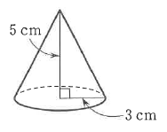 図のように、底面の半径が3cm、高さが5cmの円すいがあります。この円すいを水平な台の上に置いて、円すいを動かします。ただし、円すいの体積は(底面積)×(高さ)×\( \displaystyle \frac{1}{3} \)で求めることができます。