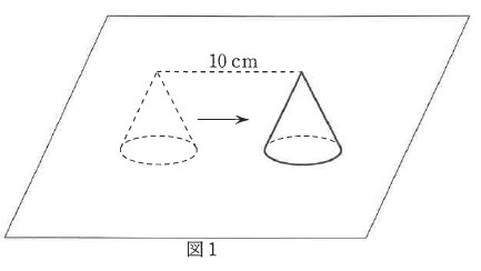 ①図1のように、円すいをまっすぐに10cm動かしました。このとき、円すいが通過した部分の体積を求めなさい。