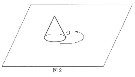 ②図2のように、円すいをOを中心として1回転させました。このとき、円すいが通過した部分の体積を求めなさい。