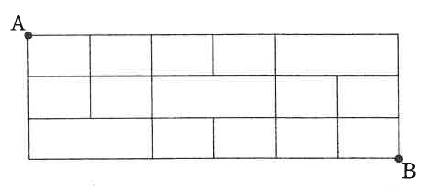 図のような通路をA点からB点まで進みます。最短で行く行き方は何通りありますか。