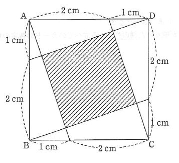 引用元:巣鴨中学校 2025年度入学試験問題(第1回) 算数 問1-(6)次の四角形ABCDは正方形です。斜線部分の面積は何cm2ですか。