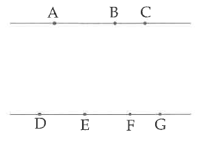 引用元:滝中学校 2025年度入学試験問題(第1回) 算数 問1-(4)次の図のように、2本の直線上に7点A、B、C、D、E、F、Gがあります。この中から3点を選び三角形を作るとき、3点の選び方は何通りあるか求めなさい。
