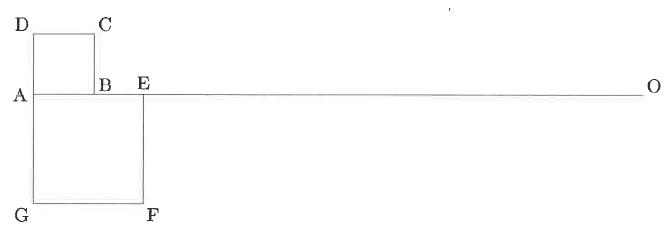次の図のような、大きさの異なる正方形ABCD、正方形AEFGと直線AOを組み合わせた図形があります。この図形において、4つの点P、Q、R、Sを、Aを出発点として次に示すコース上をそれぞれ動かします。