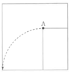 引用元:桐光学園中学校 2025年度入学試験問題(第1回) 算数 問2-(5)図のように1辺が8cmの正方形と縦5cm、横3cmの長方形があります。この長方形は、正方形の辺上をすべることなく、また、正方形の外部に出ることなく90度ずつ4回回転し、1周して元の位置にもどります。図の点線は最初に90度回転したときの点Aの動いた跡を表しています。点Aが動いた跡の線の長さの合計は cmです。